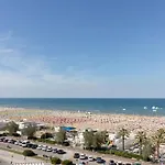 Fellini Suite - Sea View Rimini, som ligger 5 minuter till fots från Viale Regina Elena, har ett fitnesscenter. Den här strandnära 42 m² stora lägenheten erbjuder utsikt över trädgården och en terrass.